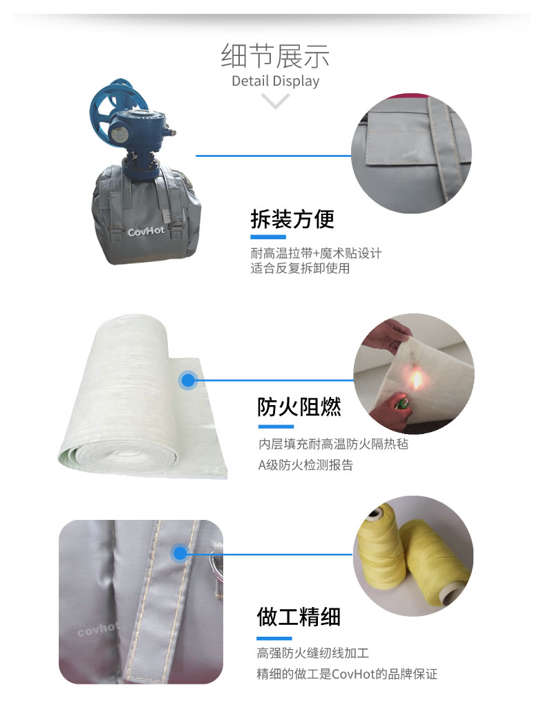 7.  設(shè)計(jì):采用單層和多層可拆卸式保溫衣設(shè)計(jì),通過魔術(shù)貼和皮帶連接,安裝拆卸十分簡易,不需要專業(yè)技術(shù)人員。